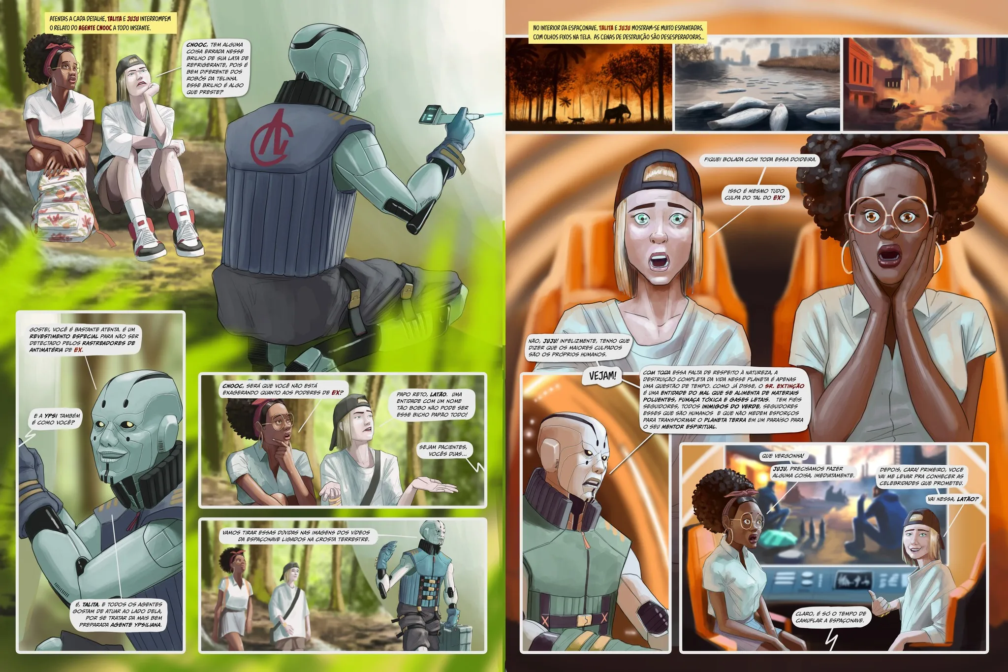 SINOPSE: Chegando à Terra com o objetivo de apresentar aos habitantes ensinamentos sobre preservação do meio ambiente e história, CNOOC, tem sua nave atingida pelos que não querem que ele complete sua importante missão. Assim, ele conhece três meninas muito interessantes: Talita, uma menina estudiosa; Juju, uma funkeira muito antenada e bagunceira; e Boyu, uma jovem de origem chinesa, que enfrenta problemas de aceitação e bullying. Juntos, CNOOC, Talita, Juju e Boyu iniciam viagens no tempo, que acontecerão ao longo de diversos volumes, sempre tratando de temas da história do Brasil e da China.