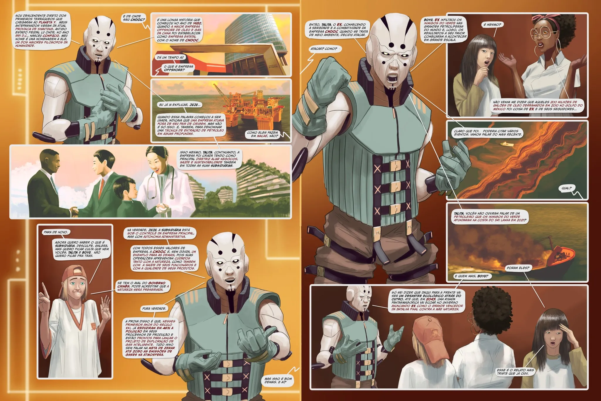 “CNOOC – A Inteligência do Futuro” é uma história em série, direcionada ao público infanto-juvenil, e que traz como tema central a preservação do planeta, além de promover um intercâmbio cultural entre Brasil e China, pois sai em português e mandarim na mesma edição. Os leitores que retirarem o livro físico ainda encontrarão, dentro da obra, um Cartão Chiease, que garante 90 dias de acesso gratuito a um curso de mandarim no aplicativo Chiease. A iniciativa busca incentivar o aprendizado do idioma e proporcionar uma experiência ainda mais imersiva com a obra.